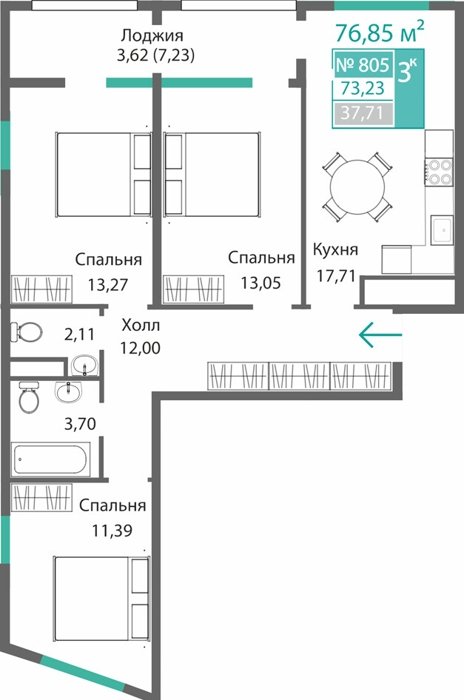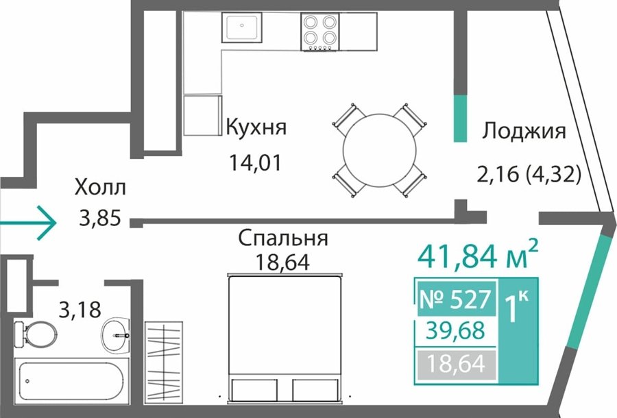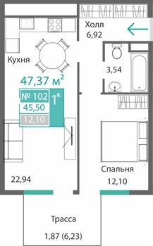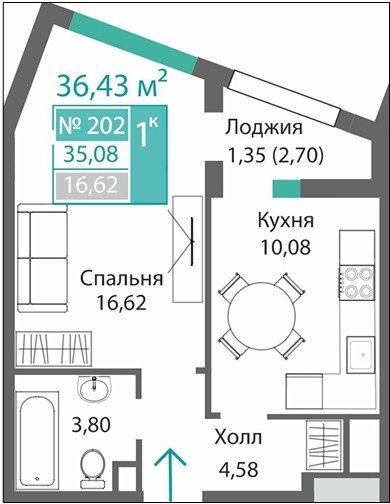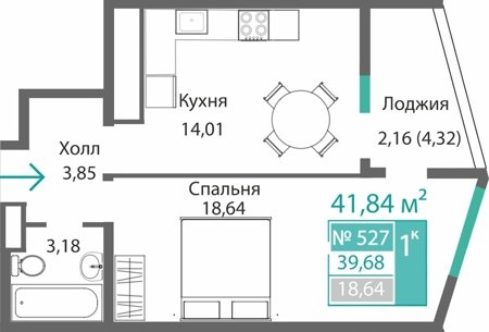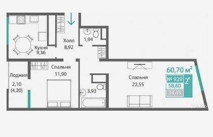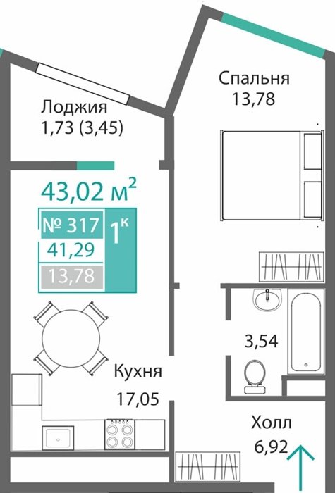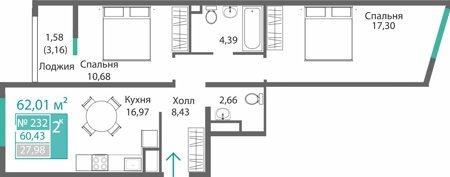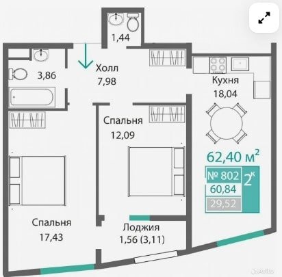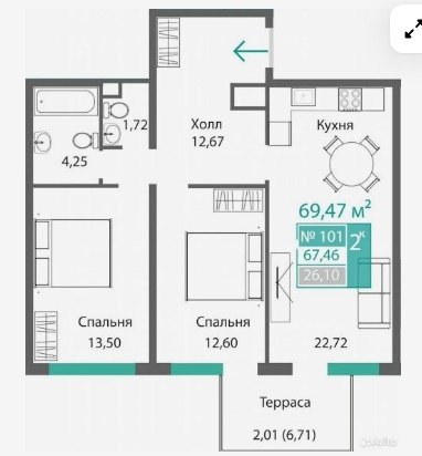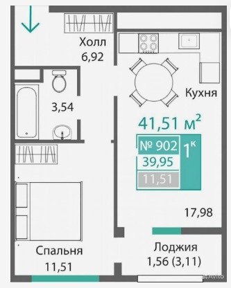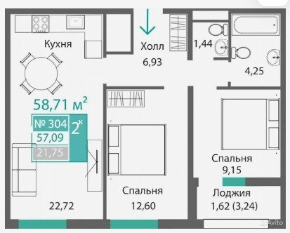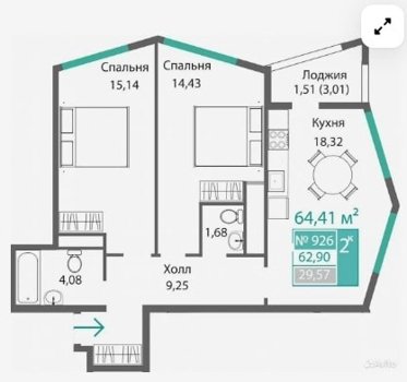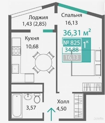 Площадь от 34.46 м2
