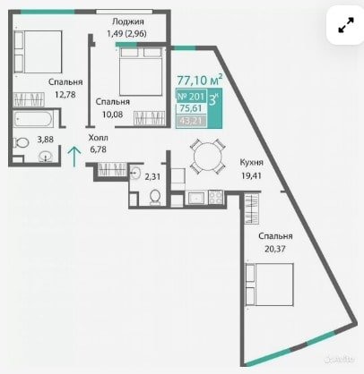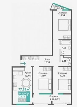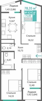 Площадь от 75.02 м2