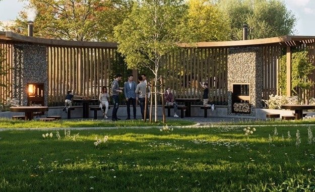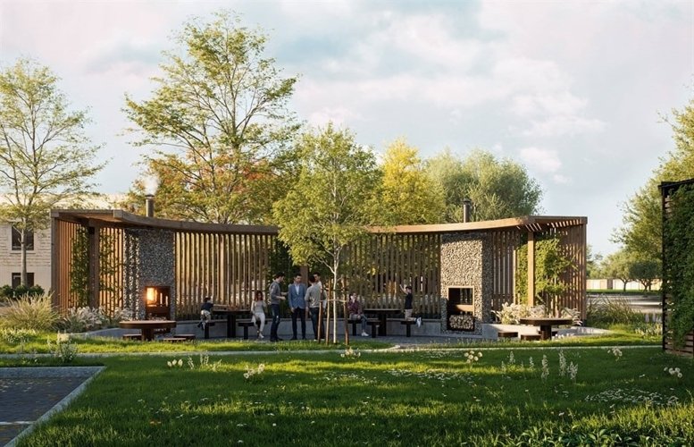 Ландшафтный дизайн превращает территорию в живой сад. Крупномерные деревья, кустарники, геопластика с холмами и тропинками создают ощущение парка у дома. Плюс уютные зоны барбекю для семейных пикников