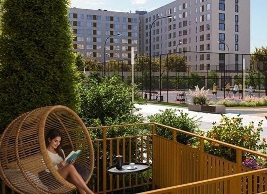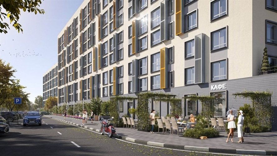 На первых этажах — магазины, кафе и другие сервисы прямо у порога, делая комплекс самодостаточным